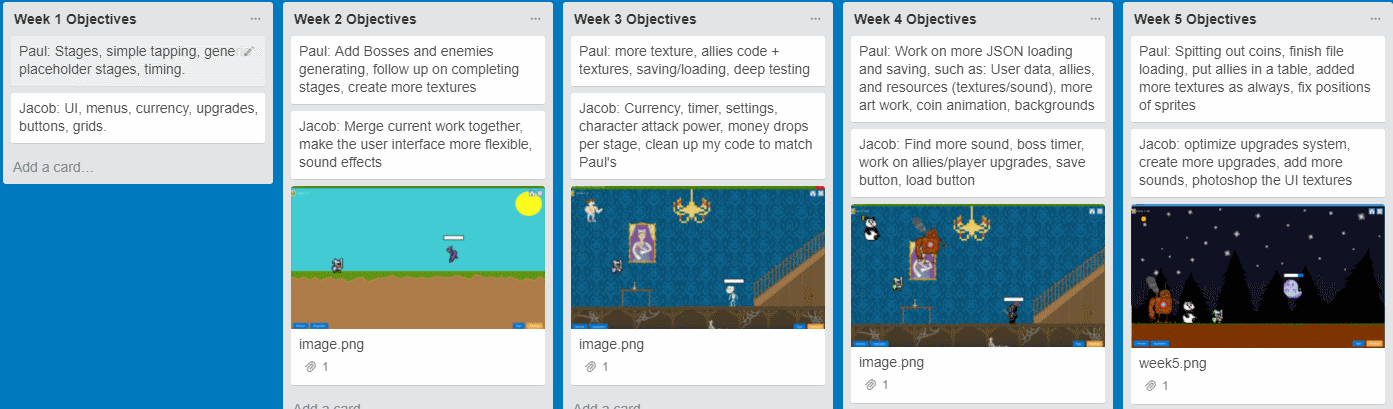 Jacob worked on things such as user interface design and programming. He worked on the heroes and taps upgrades, along side programming the currency that you get from the enemies. Jacob also got all the sounds in the game to work. As well, as sourcing the sounds.